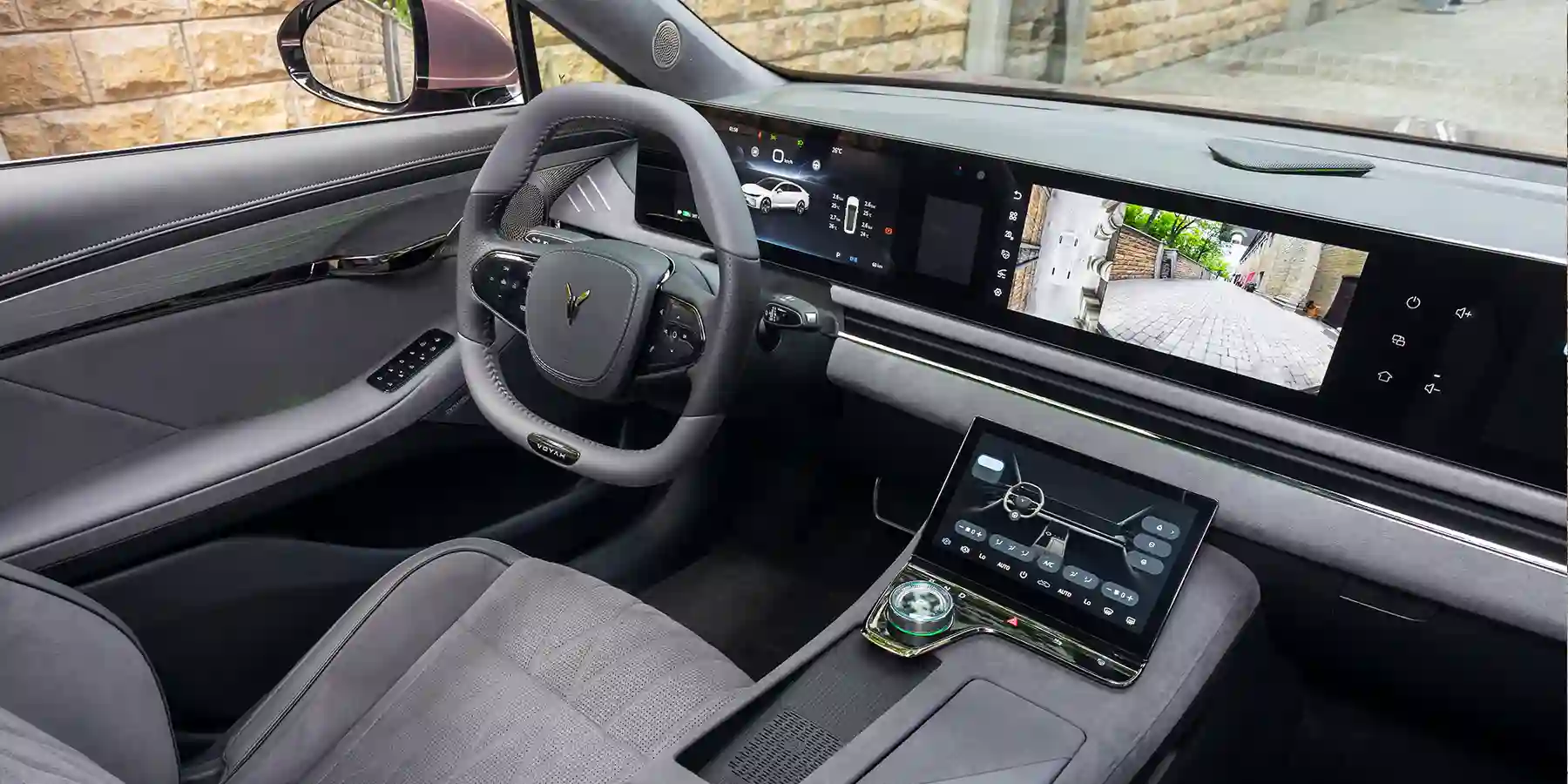 Интерьер VOYAH PASSION олицетворяет собой роскошь и непревзойденный комфорт, а передовые технологии, примененные в создании седана, позволяют заглянуть в будущее, доступное в настоящем. Водителя и пассажиров встречает 1,4-метровый тройной «парящий» сенсорный дисплей, а инновационный кокпит заботливо проецирует ключевые показатели органов управления на лобовое стекло.